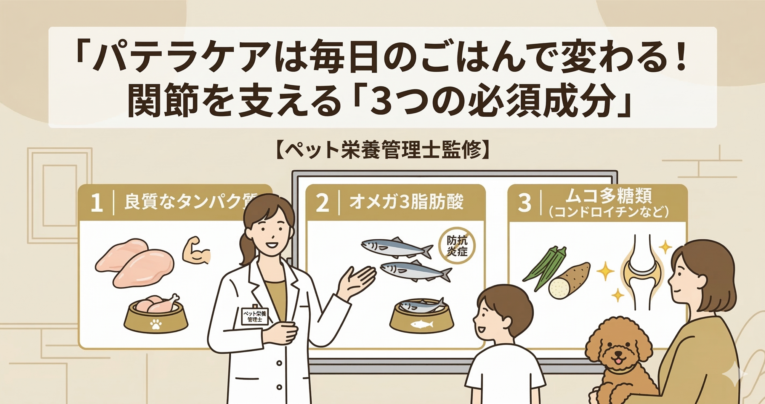 パテラケアは毎日のごはんで変わる!関節を支える「3つの必須成分」